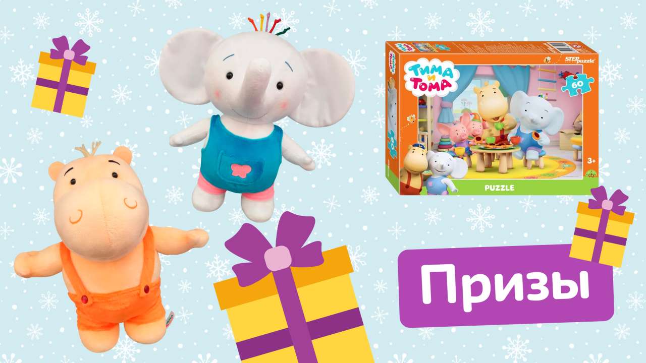 Подарки от героев мульсериала «Тима и Тома»: мягкая игрушка и пазл. У нас 5 призов для 5 победителей.